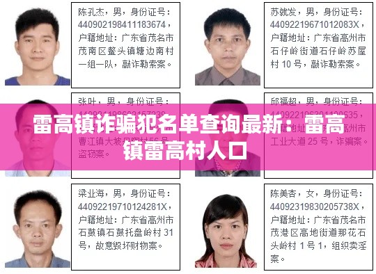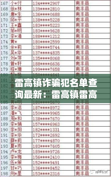 随着互联网的普及,诈骗案件日益增多,给广大人民群众的财产安全带来了严重威胁。为了维护社会治安,打击诈骗犯罪,雷高镇警方定期公布诈骗犯名单,以便群众及时了解和防范。本文将为您带来雷高镇诈骗犯名单查询的最新信息。