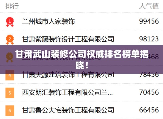 随着社会的不断发展,装修行业在甘肃武山地区逐渐崭露头角,面对众多的装修公司,消费者在选择时往往会感到困惑,本文将对甘肃武山地区的装修公司进行排名,以便消费者能够更好地了解并选择适合自己的装修服务商。