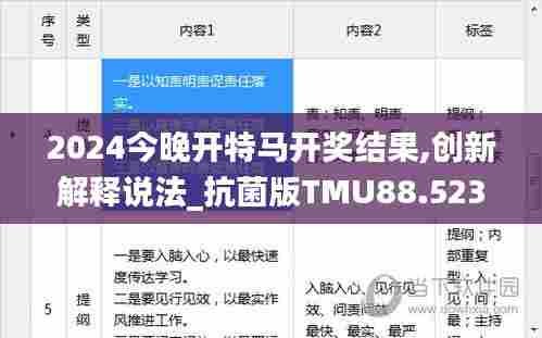随着科技的飞速发展,2024今晚开特马开奖结果成为了人们关注的焦点。在这个充满变数和机遇的时代,如何把握开奖结果,以及如何运用创新解释说法来应对各种情况,成为了人们关注的焦点。本文将围绕这一主题,结合抗菌版TMU88.523,展开探讨。