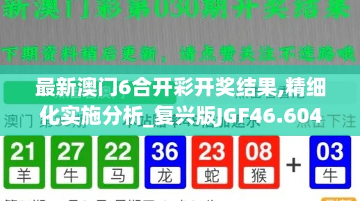 澳门6合开彩是一种颇受欢迎的博彩活动,自其推出以来便吸引了大量参与者。这个博彩游戏简单易懂,但同时也具备一定的风险性。近年来,随着科技的发展,澳门6合开彩开奖结果的查询方式也越来越多样化,选手们可以通过官网、手机应用等多种渠道获取最新信息。为了帮助参与者更好地理解和参与这一活动,本文将对最新澳门6合开彩开奖结果进行精细化实施分析,特别是关注复兴版JGF46.604的相关内容。