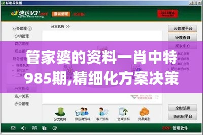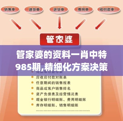 在现代商业环境中,数据的处理和分析变得愈加重要,特别是在财务和管理领域。管家婆的资料一肖中特985期是一个提供有关企业运营、财务状况和市场需求等综合信息的平台。它为企业提供了实时、准确的决策支持,使管理层可以根据数据制定精细化方案。