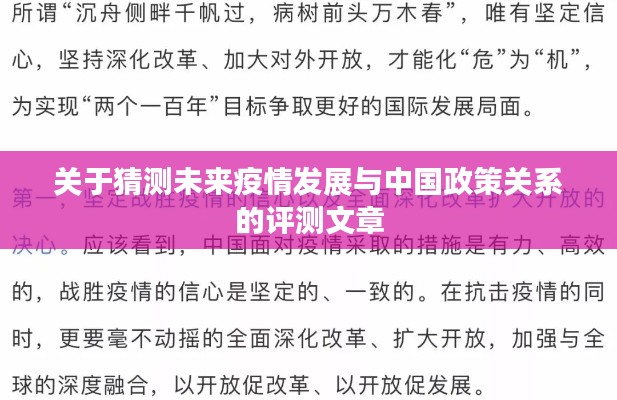 随着全球疫情的演变,关于未来疫情的走向及其与各国政策关系的猜测成为了公众关注的焦点,本文将围绕“猜测2024年11月30日最新疫情是中国故意”这一主题,进行详尽的评测与介绍,文章将保持专业、客观的语言风格,力求为读者提供全面、准确的信息分析。