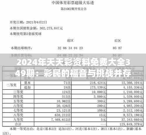 转载请注明来自山高海投内控平台,本文标题:《2024年天天彩资料免费大全349期:彩民的福音与挑战并存》