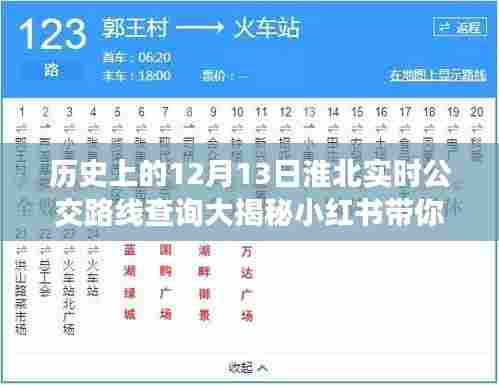 近年来,随着互联网的普及和发展,获取信息的方式变得越来越便捷,小红书作为一个时尚生活分享平台,汇聚了大量关于淮北公交路线的分享和点评,今天我们就通过小红书的分享,一起探寻淮北公交的变迁之旅,在小红书上,你可以找到关于淮北公交的最新资讯、历史变迁、网友评价等丰富内容,通过搜索关键词“历史上的12月13日淮北实时公交路线查询”,你将发现许多有趣的分享和故事。